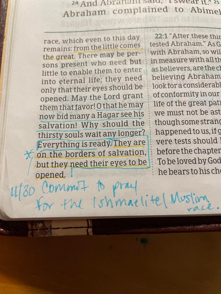 I was flipping through my bible yesterday morning and noticed by Genesis 21 where I wrote back in November of 2019 *Commit to pray for the Ishmaelite/Muslim race*